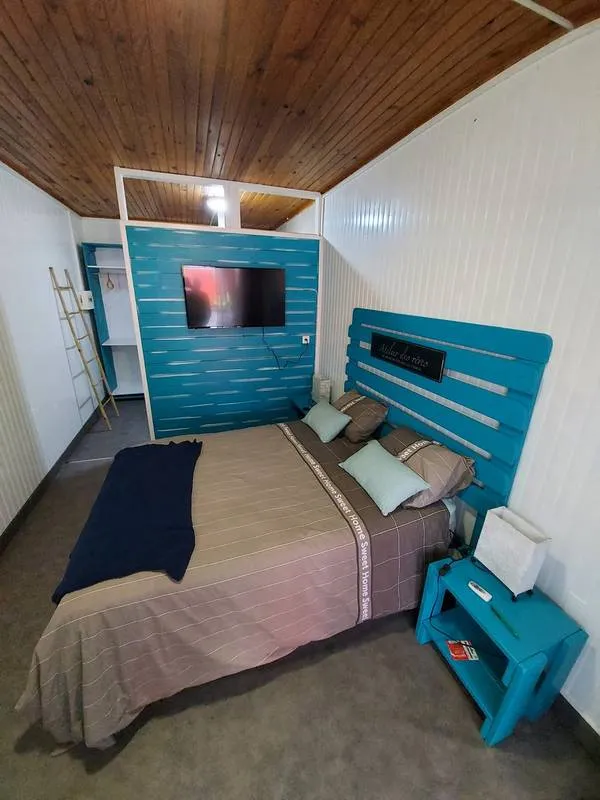 À deux pas du centre-ville de Cilaos, le studio séduit par son ambiance colorée, son agencement fonctionnel et ses équipements modernes. Lit double avec une literie soignée, coin télé équipé, rangements pratiques : tout est conçu pour un week-end détente sans compromis. En bonus, une terrasse couverte aménagée, parfaite pour un petit-déjeuner au calme ou un dîner aux chandelles dans un décor créole typique.